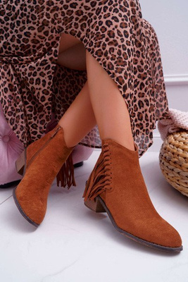 +3Cizme cu toc pentru femei din piele de primăvară din piele de căprioară maro nicole 2430