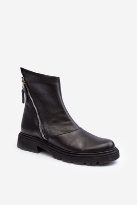 +2Botine din Piele de Vaca cu Platforma si Talpa Plată Neagră Rewam
