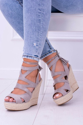 Graue Ciao Ballerinas aus Wildleder mit Spitze