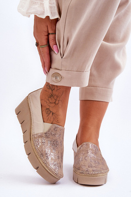 Damen Leder Ballerinas Maciejka 01358-22 Beige und Gold