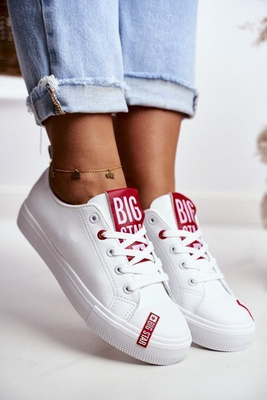 +1Damen Leder Turnschuhe Big Star GG274060 Weiß