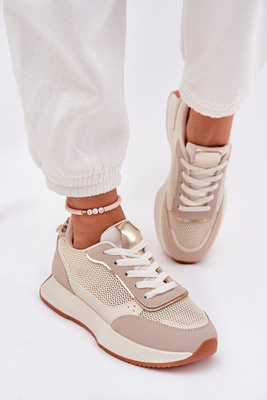 Damen Sportschuhe Mit Netz Auf Plattform Beige Poova