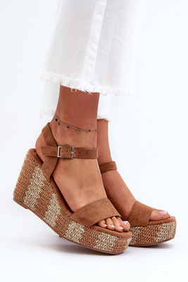 Damen Keilsandaletten mit geflochtenem Riemen Camel Reviala