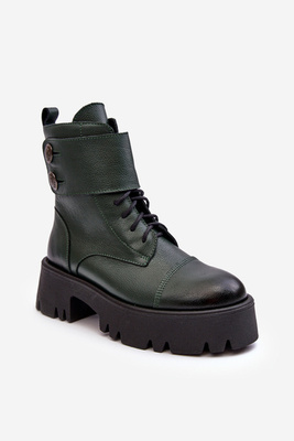 Damen Leder-Worker-Stiefel Grün Lemar Anceria