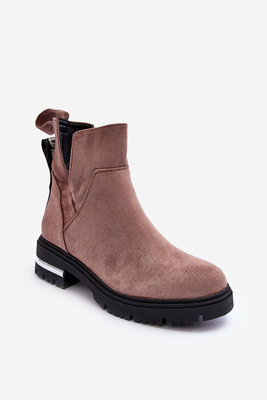 Warme Wildleder-Arbeiterstiefel mit flachem Absatz, dunkelbeigefarbene Gondel