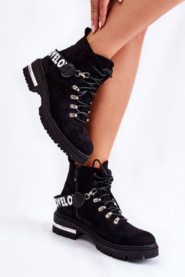 Warme Wildlederstiefel mit Gürtel Schwarz Aurelio