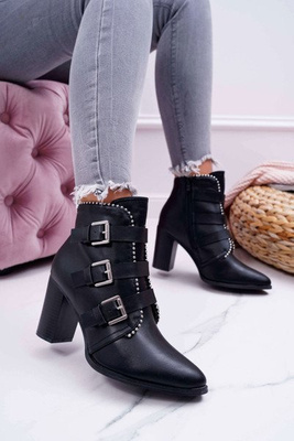 Damen Stiletto-Schnallenstiefel Schwarz Finbas