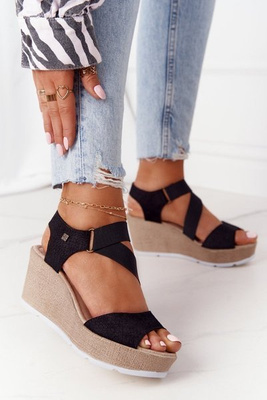 Gestufte geflochtene Plateausandalen Schwarz La Palma