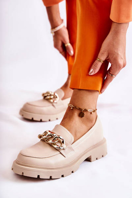 Damen Leder Loafer Halbschuhe Beige Mollie