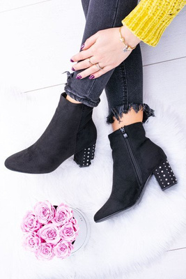 Wildledergefütterte Stiefeletten Mit Perlen Und Schleife Schwarz Perla