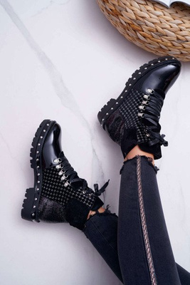 Damen Nietenschnallenstiefel Schwarz Berugio