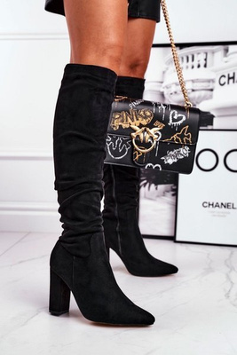 Damen Stiletto Stiefel Wildleder Schwarz Pomestro
