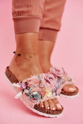 Damen Flip Flops mit Blumen Rosa Enrissa