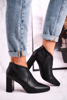Gewärmte Stiefel mit metallischen Perlen und Bändern Schwarz Perla