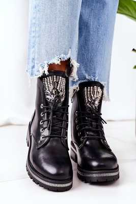 Schwarze Western-Stiefel mit durchbrochenem Ausschnitt