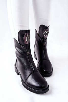 Lederstiefeletten mit Zierreißverschluss Schwarz Lomissa