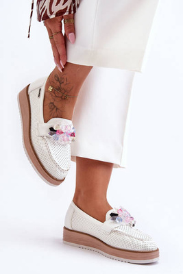 +3Damen Plateau-Mokassins mit Steinchen Weiss Elonore