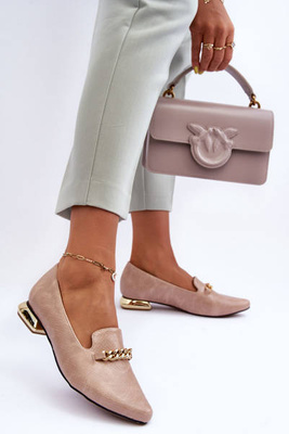 Lederballerinas Mit Flachem Absatz Und Kette Beigefarbene Lanez
