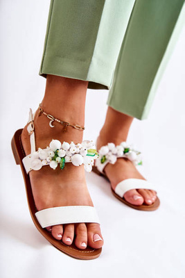 +3Damensandalen mit dekorativen Muscheln Weiß und Beige Verdem
