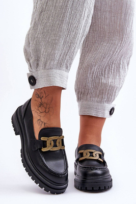 Damenloafer mit flachem Absatz und Plateau Schwarz Kaldira