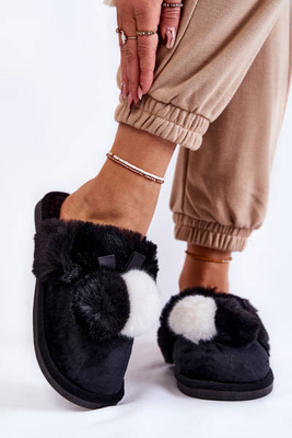 Damenhausschuhe mit Bommeln und Fell Schwarz Sahira