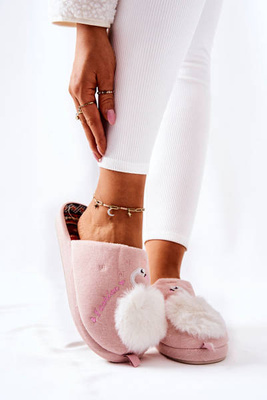 Frauen Pelz Ohren Hausschuhe Powder Pink Hippo