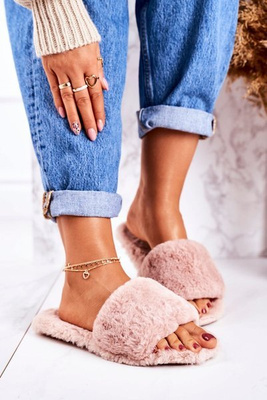 Frauen Pelz Ohren Hausschuhe Powder Pink Hippo