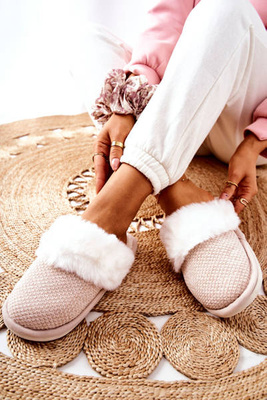 Warme Damenhausschuhe mit Fell Beige und Rosa Franco