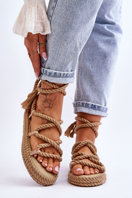 Gebundene Sandalen auf einer massiven Plattform Dunkelbeige Can't Wait
