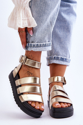 +2Sandalen auf einer massiven Plattform Goldenes Lisbona