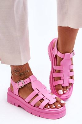 Damen Sandalen Mit Schmuckriemen Flach Fuchsia Adissa