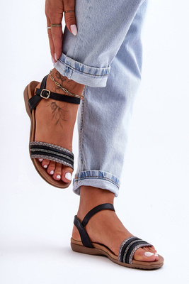 Klassische Flache Damen Sandalen Schwarz SBarski 6708