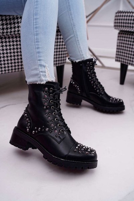 Women's Worker Boots mit Strasssteinen Schwarz Gether