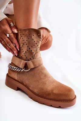 Warme Wildlederstiefel mit Kette Beige Sorita