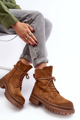 Damen Stiefeletten Trappers mit dicker Sohle Camel Narelona