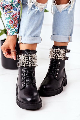Fleece-gefütterte Workers mit Perlen Schwarz Jetzt oder nie