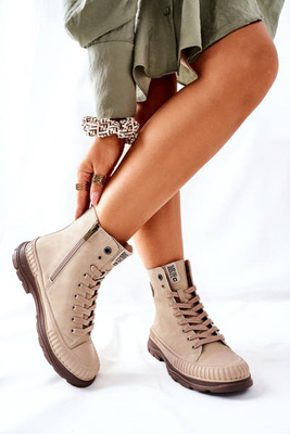 Damenstiefel mit hohem Absatz Leder Wildleder Big Star II274355 Khaki