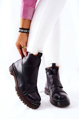 Leder Worker Stiefel Laura Messi Schwarz 2209