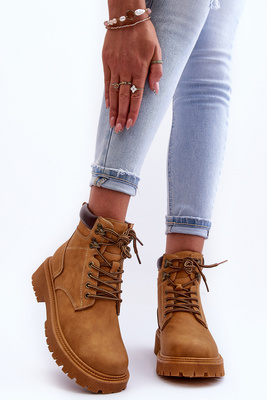 Hellbraune Mit Flachem Absatz Lederarbeiterstiefel Aganne