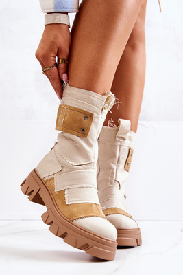 Hohe Stiefel Workers Reißverschluss Beige Nerissa
