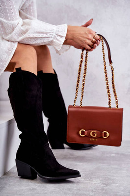 Warme Wildlederstiefel mit Absatz Schwarze Obsessiv