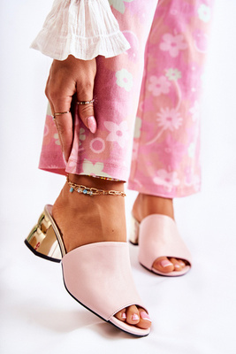 Damenhausschuhe aus Leder mit Absatz Pink Perry