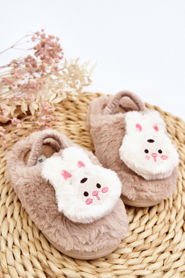Kinderpelzhausschuhe mit Bär dunkelbeige Apolanie