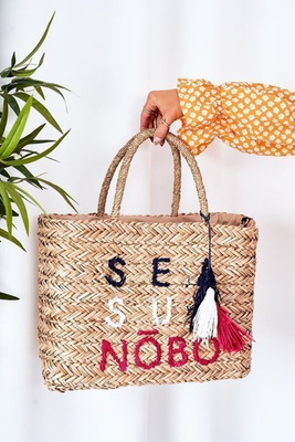 +1Geflochtene Beachfront Shopper Handtasche NOBO XK0410 Beige
