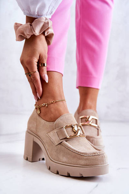 Halbschuhe Mit Verzierung Auf Einem Block Beiges Gelanor
