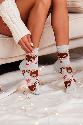 +3Weihnachtliche Damen Socken Rentiere Ecru