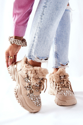 Damen Hohe Stiefel Schnürschuhe Beige Belive