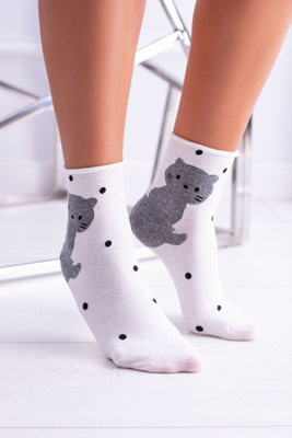 Rutschfeste Socken für Frauen Warm Grey mit Puss