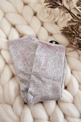 Damen Sportsocken Vertikale Inschrift Sport Grau
