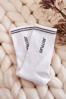 +4Damen Sportsocken Vertikale Inschrift Just Play Weiß